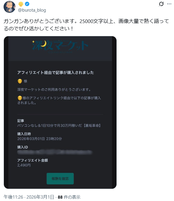 【裏垢革命】パソコンなし&1日10分で月30万円稼いだガイさんの教材レビュー&経由特典