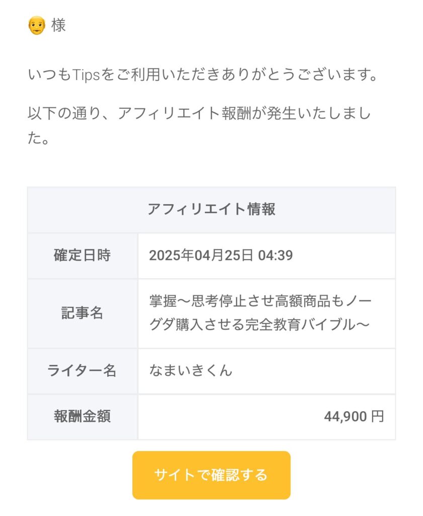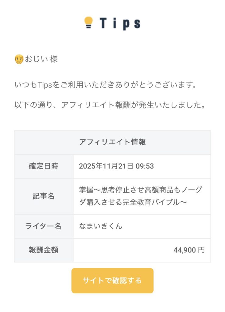 Tipsアフィリエイトのみで100万円売上
